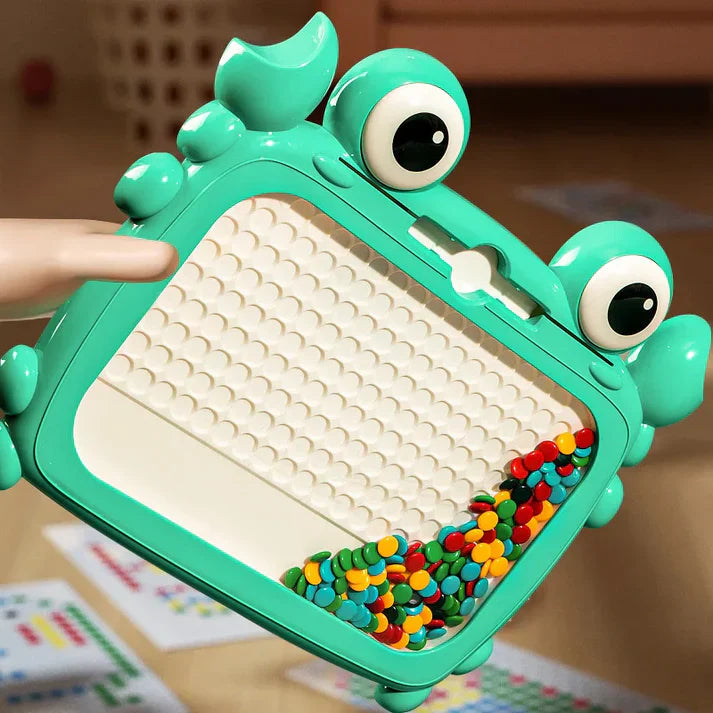 The Crabby Sketcher Magnetic Drawing Board is the perfect tool to foster your child's creativity while developing essential motor skills. Featuring a cute crab design, this magnetic drawing board allows children to draw, doodle, and express themselves using a unique magnetic pen and bead technology – all without paper or chalk. Ideal for toddlers and young children, this fun toy provides hours of playtime enjoyment while promoting hand-eye coordination and fine motor skills.